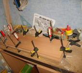 Передняя часть фезюляжа - это переклей на смоле из 2-х листов 3,5-4мм фанеры. Почему их склеивал - потому что очень трудно подобрать неизогнутые участки фанеры такого размера. А так берешь 2 любых куска, смазываешь эпоксидкой и зажимаешь их между ровными ламинатными плитами, типа от столешницы. В итоге передняя часть фезюляжа получается ровная, как линейка и ее уже никуда не “ведет”!