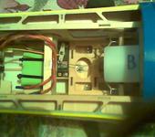за трубой к нижним выступам-полочкам клеем 2 рейки сосновые 5х5 гдето, на них 81ю машинку ближе к левому борту - если ямаду твою поставить головой на пол восьмого, то тяга пройдет точно по полке для бака