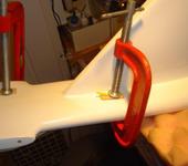 Как изготавливался шпангоут и площадка для машинок. Изначально, из плотного поролона, был вырезан приблизительный шаблон шпангоута, потом был вырезан шаблон из миллиметровой фанеры и подогнан уже точно по месту. На его основе был сделан шпангоут из 3мм фанеры. Таким же способом был сделана и площадка под сервы, но установить ее совместно с шпангоутом оказалось невозможно, пришлось распилить на две половинки и вклеивать по отдельности. Отдельно стоит отметить крепление боуденов, ибо каждый боуден должен быть закреплен как минимум в 2-х точках. Вклеивать пластиковый боуден в стеклопластиковую корку смысла нет, так как очень мала площадь контакта, да и сами материалы плохо склеиваются. Поэтому, в местах выхода боудена наружу, установлены фанерные площадки, которые надежно вклеены и к корке и к боудену. В целом, затраченные труды на установку серв в мотогондоле себя полностью оправдали, так как получилось надежное, герметичное крепление бака, защищенную от воды установку рулевых машинок, некоторое смещение ЦТ вперед, а также приятную эстетику самолета, без лишних деталей.