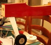 Тягу газа пришлось вести сбоку фюзеляжа. После сборки и балансировки вся конструкция оказалась примерно на 120 грамм легче рекомендованного производителем веса, но для того, чтобы сбалансировать центр тяжести без использования грузов пришлось бортовой аккумулятор размещать в хвосте.