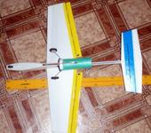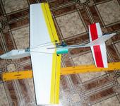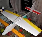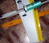 Сделан по технологии “Птенца”, с применением двух 4мм карбоновых трубок - лонжерон крыла, лонжерон стабилизатора, два стрингера (верх и низ фюзеляжа), и кусочка изополина, в который обернут импеллер.