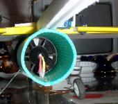 Импеллер этот, двигатель этот. Тяга в статике 390гр. Взлетный вес самолета 382гр. После взлета сбрасываю газ до половины, тяги хватает на широкую петлю.