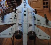 Облёт. Всё просто отлично! Летает просто супер! Пришлось приподнять вилочками тяг сопла, т. к. на посадке, при уборке полностью газа, СУшка подрывалась вверх - рули высоты и сопла работали не одинаково, после регулировки стало всё на свои места. С импеллерами, даже с отклоняемыми векторами, надо твёрдо уяснить, что при скорости близкой к нулю (плоский штопор, и особенно перевёрнутый плоский штопор) даже при вкл. полного газа, секунды 3 самолёт абсолютно не управляем, создаётся полная иллюзия отказа управления! Вывод: все фигуры высшего пилотажа только на высоте. И самое главное - ТАЙМЕР! о нём никогда забывать нельзя!!!