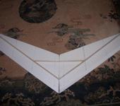 Пока не вырезаны рули и не приклеены, просто приставлены. К раме приклеены два 2мм угольные стержни, которые дают V и немного жесткости. По передней кромке будут ещё коротенькие лонжероны внутри.
