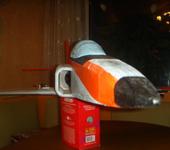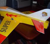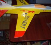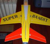 Всем здравствуйте! Вот и я долго смотрел на этот самолет, изучал форум и решил сделать Бандита в качестве тренера перед вылетом на F-5 с Хоббисити. Процесс сборки опускаю, так как все фото и подробные описания сборки имеются здесь и у немцев. Если кого интересуют характеристики, то вот они: размах 820 мм, длина 940 мм, вес с батареей 3S 2200 мА 600 грамм, импеллер 55 мм с инранером 4400 kV. Статическая тяга 440 грамм. Что еще? Еще крыло сделал профильное, оно, кстати, и дало такой большой вес, РН нет, но есть флапероны. Думаю они пригодятся при посадке. Друзья-товарищи по хобби заставляют сделать шасси. С ними полностью согласен, так как посадка “в травку” не безопасна в первую очередь для крыльев. Кстати крылья обтянуты скотчем. В общем модель готова к испытаниям. Видео испытательного полета за мной. А пока выкладываю на суд Бандитоводов фото самолета: