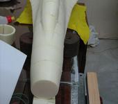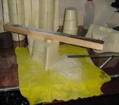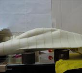 Ну и периодически проверяю геометрию. Пока нормально. Сборка происходит как советовали - наношу клей, прикладываю вторую половину, вывожу и центрую булавками. Использую гири когда надо придавить. Единственная разница- я лью много клея, так, что бы он выходил из щелей. Так борюсь со своими погрешностями. Если дождаться полного остекленения Титана он прекрасно шкурится вместе с пеной. Чтоб пыль сильно не разлеталась использую мокрую тряпку. Шкурю на ней. Если делать аккуратно, то после работ генеральная уборка не потребуется 😃 Вот немного фоток.