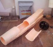 Шасси будут скорее всего, но не сразу. Стеклом 18г пройдена вся тушка, а толстым стеклом еще поверх те места которые будут касаться при посадке на брюхо. Весь низ толстым стеклом - это веса бы серьезно добавило. Сейчас 100г добавилось на всю корку. Перед покраской еще прошкурю как положено.