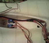 Проводку делаю понемногу. Регули в итоге встали вот таким образом (на фотках). Приемник будет под воздушным тормозом, сразу за сервами ПГО и гироскопом (пока не установлен). Под Кабиной будет батарея и BEC. Загрузка батареи через съемную кабину. Кабину прозрачную пока не делал, но возможно займусь.
