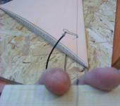 - поскольку пена плавится и профиль становится тоньше, при наклеивании нервюр подкладывал под них линейку, получается они приклеены не заподлицо с нижней плоскостью, а на 2 мм выше, верхняя кромка нервюры как раз совпадает с кромкой пены;