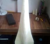 придавливал так же как и части между собой, 20 литровым балоном с водой, правда чтобы он не рухнул пришлось подстраховать его веревками, сто то типа растяжек. А потом, когда мажешь пену очень тонким слоем она не больно то и прет, а через час груз можно снимать, клей уже высох. Только я хитрость одну применял, на одну поверхность мажу пену и разгоняю палочкой, а вторую прежде чем прилож ить протираю чуть влажной тряпкой. Пена-то схватывается благодаря влаге. Шлифовать по сравнению с титаном - просто удовольствие, я прям загнался шлифуя до такой степени что проводишь по тушке ладонью, а стыков не чувствуешь, задиры от шкурки мелкие чувствуешь а стыков нет 😁