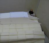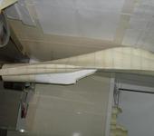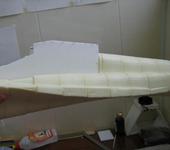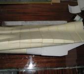 Продолжил строительство. Позавчера вместо сборки воздухозаборника решил пошкурить носовую часть. Блин, ругал себя что не послушал Егора, не надо было столько клея лить. Раньше было нормально, но с этой пеной номер не прошёл. Вообще этот материал больше напоминает мягкое дерево, имеет волокнистую структуру, запоминает форму ( уже порядком отпечатков пальцев оставил), при этом достаточно жёсткая и легко обрабатываемая. В общим есть и минусы и плюсы. Если говорить о обработке и постройке, то плюсов больше.