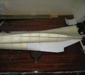 Вчера пошкурил верх центроплана, а сегодня закончил сборку второго воздухозаборника. Носовая часть с центропланом ещё не склеена.