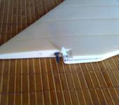 Для оси стаба я брал карбоновую трубку 5мм и длиной 85мм, во внутрь вклеил трубку меньшего размера (для усиления), свеху обмотал ниткой на цианокрилате в один слой и на конце трубки приклеил ограничитель из кусочка карбоновой трубки d=7мм, 5мм. В сам стаб вклеил трубку 7мм, предварительно вставив ось. Потм прорезал стаб и вставил пластинку ограничителя. Получилось так, что из стаба выходит вращающаяся ось, которую можно закрепить в “крепёжный треугольник” на фюзе