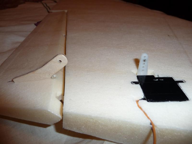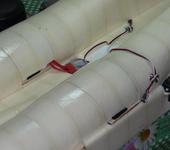 Ещё раз советую оклеивать крылья и рули стеклообоями, по моему разница очевидна исли сравнить мои фото с фото товарища МММ (без обид, объективная критика приводит к совершенству). Клеится легко, методом обёртывания одним целым куском обоев на аквалак. Жёсткость получается гараздо больше чем со стеклом, я сравнивал на экспериментальных образцах. Элероны вырезал после оклейки, вес готового крыла с вклеенными петлями, качалкой и тягой без сервы 100гр