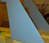 На фюз не обращайте внимания, ещё не делал. Пока всё обтянул стеклотканью в три слоя на аквалаке с промежуточным шкурением. Стабы и кили покрыл автомобильной грунт-шпаклёвкой. Это что бы убрать мелкие недочёты и текстуру ткани. Попробывал - понравился результат. Буду всю тушку покрывать. Перед покраской всё будет зашкуриваться практически до ткани.