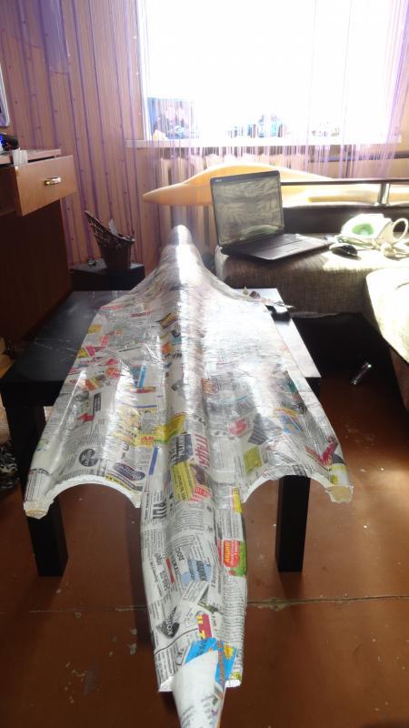 Здрасте всем !!!вот моя сушка и переродилась не судите строго первый опят работы с стеклом ,всё убирается наждачной бумагой довольно хорошо,прочность верхней доли фюза превосходная 4 слоя стекла 0.06мм +ЭДП 20 ,кромки стыковочные не обрезал не было времени хотел быстрее поделиться