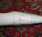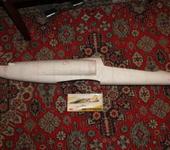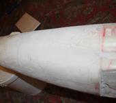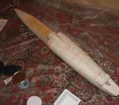 Очередной подход к снаряду закончен. Пришел домой, зашпатлевал в 3 или 4 замеса, начал ждать. Примерно через часик начал шкурить. Получилось подровнять бока и поправить заднюю часть кроме нижней поверхности. Носик получается очень хорошо. Утюжек - опять на высоте 😃 ! Дело в том, что у утюжка при обработке полукруглой поверхности фюзеляжа задействованная поверхность - прямая линия. Это - достаточно удобно. Кроме этого у него хорошо работают края там, где нужно вышкуривать обратные радиусы. Шкурка там не такая яростная, как в руках. А работать им я умею хорошо. Так что - утюжек форевер!!!