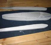 Раскраиваю плиту пенополистирола на нужные куски. Центральный фюзеляж и боковые, несущие поплаки, балки.