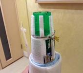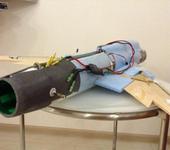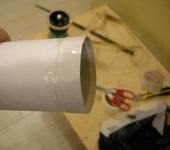 Ради экономии веса входной канал хорошо бы реализовать прям в пенопласте. Но обеспечить гладкость стенок и точно подогнать пенопластовые сегменты фюзеляжа с вырезами друг к другу просто не реально. По этому,добавив к весу самолета 50 гр., с третьей попытки была свернута труба из предварительно заламинированного скотчем листа плотного ватмана. На мое счастье здоровенные листы белого чертежного ватмана есть в продаже. Перед скотчеванием стенки будущего канала были заретушированы " под аллюминий" графитовым стержнем простого карандаша. Как-то не смотрится белым нутро самолета. Идеальной труба не вышла. Внутренняя поверхность ее должна была перейти во внутреннюю поверхность корпуса импеллера. Но,зараза, маленькая ступенька случилась. Это значит:какие-то граммы тяги бездарно потеряны. Сама по себе получившаяся труба имеет приличную жесткость на изгиб. Обжатый пенопластом сегментов фюзеляжа, ламинированный канал серьезно добавит жесткости передней части последнего. В угоду снижения риска потери драгоценнейших граммов тяги длиннющая труба входного канала не имеет перегородок и искривлений. Засасываемый воздух, обтекая обязательный элемент входа-губу, будет стекаться к импеллеру вдоль гладких стенок. Такая картина смотрится если и не идеально, то хотяб близко к оптимальной в этом проекте. В целом сомнения на предмет правильного расчета трубы входного канала остались.