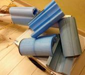 Метровый фюзеляж разбит на 5 частей. Из плотного картона вырезаны торцевые шаблоны, пока 3-х из 5-ти, сегментов. Латер, нихромовая нить на лучковой приспособе… Выжечь из пенопласта заготовки частей фюза по шаблонам труда не представляет. Часть обрезков пенопласта еще с прошлых проектов пришлось даже склеивать меж собой: не бежать же в магазин за новым листом ради пары деталей. Самолет начинает все больше быть похожим на “детище Франкенштейна”.