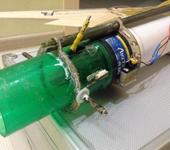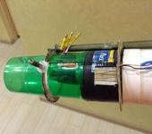 Ради экономии веса входной канал хорошо бы реализовать прям в пенопласте. Но обеспечить гладкость стенок и точно подогнать пенопластовые сегменты фюзеляжа с вырезами друг к другу просто не реально. По этому,добавив к весу самолета 50 гр., с третьей попытки была свернута труба из предварительно заламинированного скотчем листа плотного ватмана. На мое счастье здоровенные листы белого чертежного ватмана есть в продаже. Перед скотчеванием стенки будущего канала были заретушированы " под аллюминий" графитовым стержнем простого карандаша. Как-то не смотрится белым нутро самолета. Идеальной труба не вышла. Внутренняя поверхность ее должна была перейти во внутреннюю поверхность корпуса импеллера. Но,зараза, маленькая ступенька случилась. Это значит:какие-то граммы тяги бездарно потеряны. Сама по себе получившаяся труба имеет приличную жесткость на изгиб. Обжатый пенопластом сегментов фюзеляжа, ламинированный канал серьезно добавит жесткости передней части последнего. В угоду снижения риска потери драгоценнейших граммов тяги длиннющая труба входного канала не имеет перегородок и искривлений. Засасываемый воздух, обтекая обязательный элемент входа-губу, будет стекаться к импеллеру вдоль гладких стенок. Такая картина смотрится если и не идеально, то хотяб близко к оптимальной в этом проекте. В целом сомнения на предмет правильного расчета трубы входного канала остались.