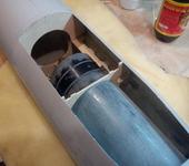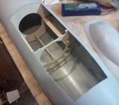 Внутри фюзеляжа есть разметка. Она была нанесена на болван перед укланкой стеклоткани и замечательно отпечаталась на фюзеляже внутри. Разметка так же присутствует снаружи фюзеляжа. Все швы будет замечательно видно изнутри. Сдвиг центрального узла исключён абсолютно. Трубки-лонжероны крыльев будут проходить насквозь корки фюзеляжа. Все шпангоуты будут приклеены изнутри к фюзеляжу и к трубам воздуховодов(входного и выпускного. На фото сопловый насадок из ПЭТ для демонстрации. На болванах сейчас “встают” воздуховоды из стеклоткани на смоле. Общая конструкция буде в виде “труба в трубе”. Тоесть. Входной канал держится на первом шпангоуте"губе" далее второй шпангоут по месту переднего среза крышки с фонарём. Длалее третий в котором стоит импеллер. Третий с четвёртым(на фото без облегчения) связываются продолными горизонтальными площадками на которые лапками ложится и крепится импеллер… Не успел сегодня сделать и сфотографировать весь внутренний набор с трубами. Сразу бы стало всё понятно. Надеюсь завтра сделаю) Опечаливает один факт. Места под фонарём просто впритык.Аккумулятор может встать только в одном месте без возможности сдвига вперед назад. если только заменить аккумулятор на другой меньшего размера. Это конечно тестовый вариант я ошибки и просчёты здесь неизбежны. Сделаю. Посмотрю что с центровкой и заложу модель чуть больше размахом. Чтобы побольше места было “под капотом”)) В процессе строительства выявил места где можно сэкономить в весе.