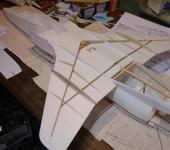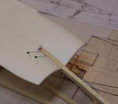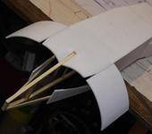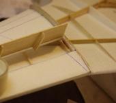 строю хвостовую часть (я Вас немного обманул, сказал что буду усиливать сосной, но мне так понравилось резать 8мм-ую бальзу, что не уверен теперь, что буду использовать сосну, при том же весе бальза имеет большее сечение, а значит площадь приклеивания больше, как-то надежней это мне видится), примерно загрузил хвост и нос, нагрузил место за кабиной весом 2х аккумуляторов, получается что центровка сильно передняя, что бы получить хотя бы 25 % по сах пришлось двинуть моторы назад, но так даже лучше, а то пришлось бы изгибать выходной канал, лучше пусть изогнется входной.