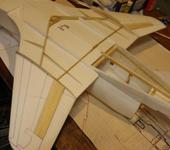 очень хорошо у этого ягуара все продумано! чтобы сделать его более похожим на настоящий, нужно приклеивать всякие накладочки, уголочки снаружи фюзеляжа, а они в то же время являются усилителями, фюзеляж становиться жестким в этих местах и изнутри тут уже не требуется ставить шпангоут, а ему там и места то нет.