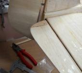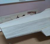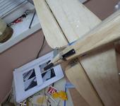 Хвостовое оперение. Немного закосячил с вертикальным стабилизатором, поэтому когда уже собрал увидел, что не установил бальзовую рейку в неподвижную часть стабилизатора, кот. должна была служить для придания закругленной формы между двумя частями стабилизатора. Поэтому выкрутился так: обточил бальзовый брусок 8*8 с одной стороны, придав ему закругление и вклеил в образовавшуюся щель, получилось конечно не совсем айс, но как говорится “без вариантов”
