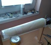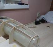 Фюзеляж покрыл стеклом 57гр, автор модели предлагал 25гр, но после шлифовки и придания ровных фюзеляжу появились “худые” места. Поэтому решил использовать ткань потолще.