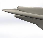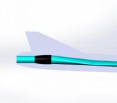 Входной канал, образуемый “штанами”, сведенными в общую трубу вышел длинным (790 мм), при том,что я двинул импеллер максимально допустимо, как мне видится, вперед. Короче я долго играл с формой входного канала, чтоб при немалой длине он как можно реже ломался по длине и вписался в модель самолета. Получил то, что видно на картинках. Для наглядности я придал всему каналу вид тела.