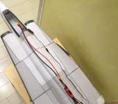 Ну все. Импеллер установлен и замурован до тех пор,когда по весомым причинам не придется его отделять от конструкции самолета. Кстати перед вклейкой хвостовой “болванки” протащил скозь консоли ,пока был свободным доступ к пути их прокладки, провода сервоприводов секций элевонов.