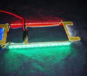 Батарея размещена снизу, шасси от 700 верт, на лыжах шарики. Подсветка с четырех сторон - разного цвета.