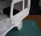 Загрунтовав кузов начал делать мелочёвку а именно зеркала , козырёк на кабину , передний бампер с кенгурятником .