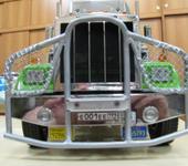 . Начал с одного ,а закончил совсем в другом ключе.По ходу изготовления пришлось фантазировать.Алюминиевый профиль 20х40 мм пилил дремелем,советую одевать очки и наушники.Винтики для крепления бампера брал М3х25 .Круглые шляпки винтиков стачивал болгаркой до плоской,чтобы они были потай в бампере.Полировка по технологии полировки спойлера.Как видно на видео,старому бамперу пришёл каюк,пришлось его распилить,чтобы отражатели выпилить.Отражатели приклеил к бамперу жидким пластиком,проверив это соединение на не нужном куске.Держится великолепно! Хотел светодиоды вместо старых фар сначала в бампер запихнуть,но передумал,в следующий раз сделаю…Хотел ещё гравёром рёбрышки для ног сделать напротив радиаторной решётки,но жалко такую полировку портить.Пусть всё блестит…