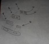 Привет ! Стекло галогенки (на рисунке 1) вырезал из оргстекла , упаковка от аудио касет , там боковая стенка имеет рыфление как раз подходящее. Стекло габарита (4) боковая стенка упаковки CD дисков . (2)- ето ПВХ 1.5 мм. делаем в нем отверстия чтобы в них поместились светодиоди (3) которые идут лентой по несколько десятков штук. все складываем в кучку и получается галоген или габарит . Еще я между (1) и (2) вклеивал квадратик из сеточки которая идет в комплекте грузовика на решетку , ета сеточка немножко маскирует пвх . Пвх можно покрасить в серый или в другой цвет . 😉