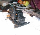 редуктор двух скоростной от шурупаверта,540 мотор пдходит без проблем .надо точить вал и фиксировать корпус третьей планитарки.(1 скорость работают все трипланитарки,2 две).передаточное соотношение не считал,но мощи и скорости хватит для трофи.но мотор надо пооборотистей 23т. примерно,на любителя.