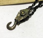 Нашёл на складе на балконе;) крюк с блоком и двойной блок. Крюк изготовлен из 3мм гвоздя. Цепь тоже самодельная. Делал довольно давно, поэтому ржавая.