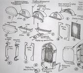 Спасибо! То что я делаю для работы над моделью, чертежом можно назвать только условно. Имею размеры колёс, базы, колеи, высоты по радиатор, высоты по руль. Начертил себе в карандаше два вида: вид сбоку, вид спереди. Остальное, деталировку, по фотографиям. Ещё есть разрез (см. выше)