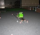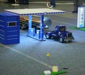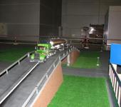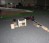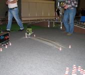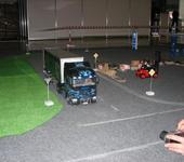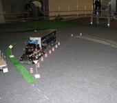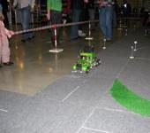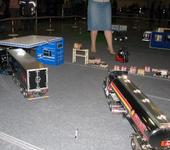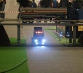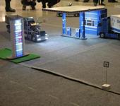 Скейт с электропиводом с соседнего стенда выскочил из под ног у наездника и влетев на наш стенд врезался в грузовик.