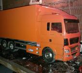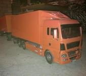 Я уже писал: передние и задние габариты наверху в уголках спереди и сзади .Прикольно было бы на всю длину что-нибудь забацать,какую-нибудь полосочку волнообразную,не более (Juicy Fruit)…А холодильник на прицепе будет? Какой длины прицеп получился и какая длина всего автопоезда? Надо бы вынести технику из подвала и сфотографировать в нормальном освещении нормальным фотоаппаратом,чтобы все увидели всю глубину и яркость цвета,которую ,на удивление удалось достичь с помощью балончика. А как получились ворота у прицепа?