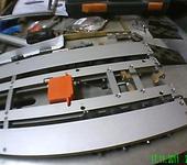 Еще поставил передние “ноги”, но не доделал их механический привод. Не сделал контактную группу для передачи управления на тралл с “гусака” (чтобы не возиться с разъемами, при отсоединении/присоединении “гусака”. В принципе хочу сделать чтобы всеми функциями можно было управлять на расстоянии, но используя стандартную Тамиевскую систему сцепки. Чтобы любой тягяч мог подъехать и “воспользоваться”. Не городить огород с приемниками в прицепе и инфракрасными модулями. Инфракрасный модуль вещь отличная, но к сожалению не у всех есть. И получится у одного все работает, а у других нет. Материалы использовал те что можно купить в магазинах и сделать в домашних условиях. Поэтому все немного аляповато выглядит. Специально не стал “заморачиваться” с производственной станочной механообработкой. Это конечно было бы и проще сделать и эстетичней выглядеть, но не у всех есть возможности станочного парка.