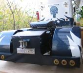 Всем привет.После выставки “Хобби” решил переделать Кинг Хаулера,тем более на зарубежном форуме нашёл оригинальный прототип и зачесались руки.Взял балгарку и отделил кабину от спальника.Из АБС пластика сделал надстройку спальника,выпелил и вставил окна из синего оргстекла,с кабиной тоже пришлось повозиться:были убраны фары(новые изготовлены из толстых маркеров),изменён угол наклона крыши кабины с заходом на спальник,надставил передние крылья ,задние изготовлены с нуля из пластиковой трубы,повторители поворотов сделаны заново и установлены под зеркала,также заново сделаны передний и задний бампера,решётка радиатора,переделана серва на седло.За кабиной добавлены две подножки.Все разъёмы и переключатели убраны с кабины на раму.Рама надставлена на 60 мм,закрыта панелью и обтянута плёнкой под карбон,задняя оптика новая сделана из радиотехнических разъёмов,спойлер ручной работы-сделан из ПВХ пластика и обтянут плёнкой.Модель покрашена автомобильной краской и покрыта 2-х компонентным лаком.Все сопутствующие работы (шпалёвка,грунтовка,доводка и т.д)были опущены мной так как я считаю ,что это засорение эфира.