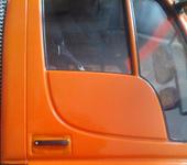 День добрый уважаемые моделисты. Мой Unimog долго стоит на полке и радует глаз, но вот что-то ему не хватает, не похож на оригинал. У всех U 300 просматривая фотки, диски колёс чёрного цвета, а у меня серебро. Взялся исправить. Покрасил диски, порожки тоже + выштамповку под дверные ручки тоже покрасил в оранжевый. Стало больше походить на большого брата. Наконец купил шасси СС 01. Как приедит, отпишусь.