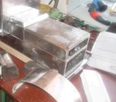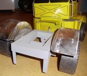 Кабина, капот, баки, крылья сделаны из железа толщиной 0.8 мм(какое было под рукой) цельно гнутые и проваренные полуавтоматом. на фотках видно. Окна не стал делать так как сложно и в кабине я планирую располагать аккумулятор.