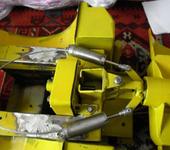 Задняя гидравлика примитивна по своей структуре и требует дороботки усиления кое каких деталей, но проста в исполнении и ниичего лишнего.(кстати первая система поворота полурам была выполнена подобным образом не не прижимась нагрузка очень большая съело ось после первых заездов и довольна медлительна). сильно не критикуйте придумывал так на бегу!!