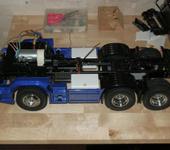 Доброго всем времени суток! Вот и настало время моего проекта-долгостроя. Основная цель “проделок – переделок” уйти от варианта стандартного кита в части задней подвески - сделать её похожей, более-менее, на настоящую используя по-максиму детали кита. А так же, уменьшить количество оборотов на выходе коробки для увеличения тяги и уменьшения скорости. Цель всей затеи - сделать вариант грузовика - тягача с большими ходами подвесок для “работы” в песочнице. Проект представляю без кабины, т.к. требуется её перекраска. Кит был приобретён в варианте Blue Edition и крыша покрашена в другой оттенок синего цвета - темнее чем остальные детали.