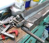 Вчера немного удалось поварить рукоять. Варил на плите 10мм, закрепляя все детали к ней, чтобы не уводило при сварке, вроде все получилось соосно.