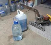 Попробовал испытать грузоподъемность. Подвешеная бутылка на 5л с водой легко и непринужденно висит, экскаватор не переворачивается ни вдоль гусениц, ни поперек