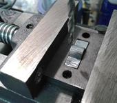 Также практически полностью закончил сверление отверстий в опорах катков. Ох уж и утомительное это дело! ))) Но, чтобы упростить процесс и соблюсти точность сверловки, при лазерной резке были сделаны приспособы, которые зажимаются в тиски. Затем в эту приспособу просто укладываешь деталь без зажима в тисках и сверлишь в нужных местах отверстия.
